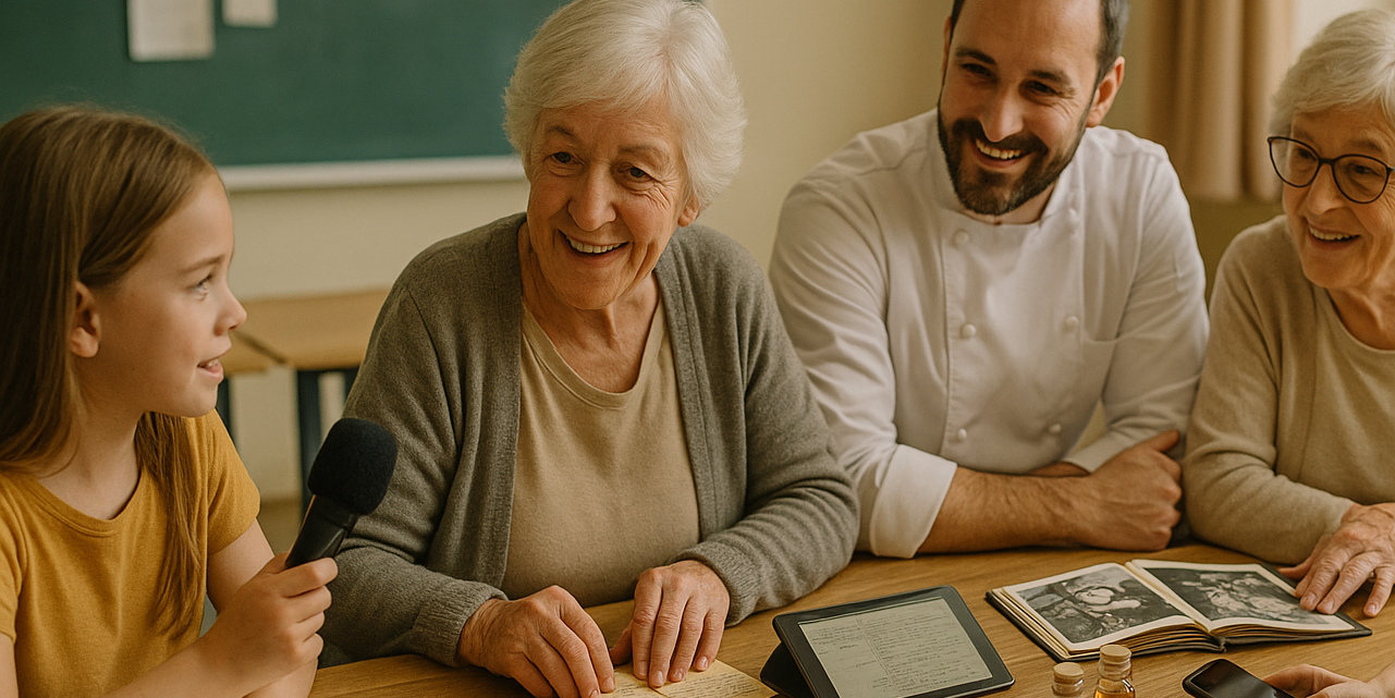 Réalisation d’ateliers de co-création intergénérationnels avec les aînés.es, les jeunes du primaire (ex.: journaliste d’un jour), les chefs, les guides mycologues et l’équipe du RPA sur l’élaboration du programme pilote, la collecte des récits culinaires et la mémoire des saveurs, encadrée par une cellule d’activation interdisciplinaire.